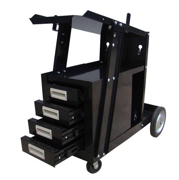 Το προσφερόμενο καρότσι μεταφοράς για εξοπλισμό συγκόλλησης είναι εξοπλισμένο με 4 ευρύχωρα συρτάρια για κάθε είδους αξεσουάρ και εξοπλισμό συγκόλλησης, ένα εκ των οποίων - κλειδωμένο με κλειδί , σας επιτρέπει να κρύβετε τα προσωπικά σας αντικείμενα.